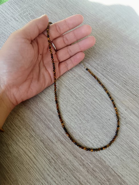 Le collier "La Guerrière" célèbre le courage, la confiance et la détermination. Orné perles facettées d’œil de tigre, il insuffle force et assurance, aidant à surmonter les défis et à avancer avec lucidité.